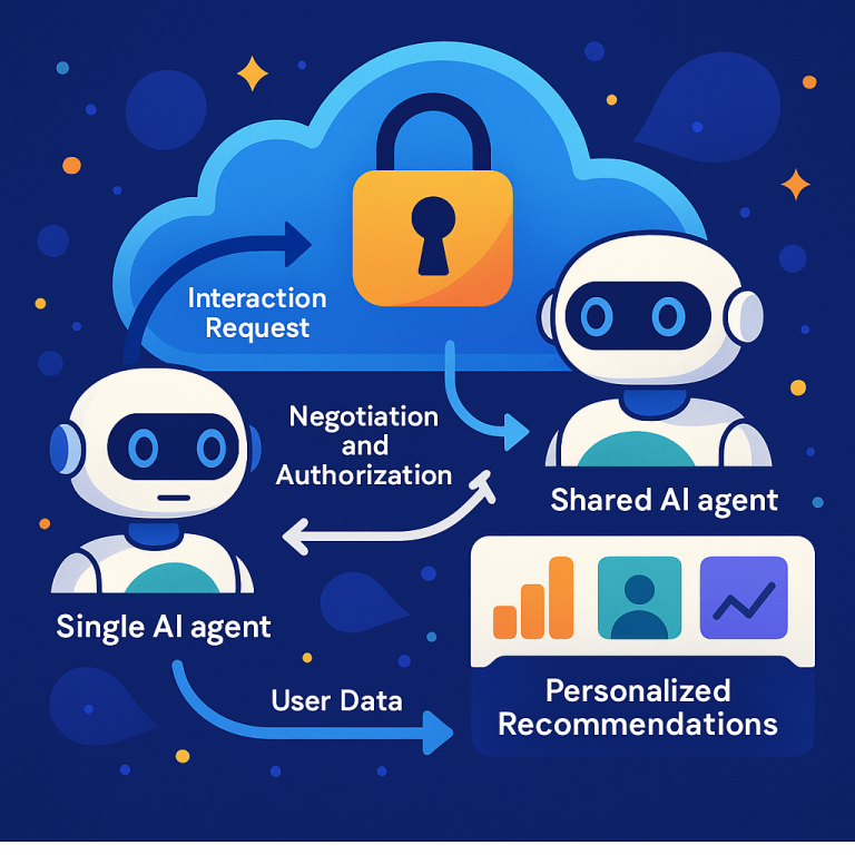 Here’s how it works in simple terms. When you use an app or device, your personal AI agent (your digital helper) may need help from a shared AI agent—like one that manages travel bookings, health advice, or shopping recommendations. Your agent sends a request to interact with the shared agent. But before anything happens, the system checks if your agent is allowed to talk to the shared agent. This step is like a doorman checking a guest list.