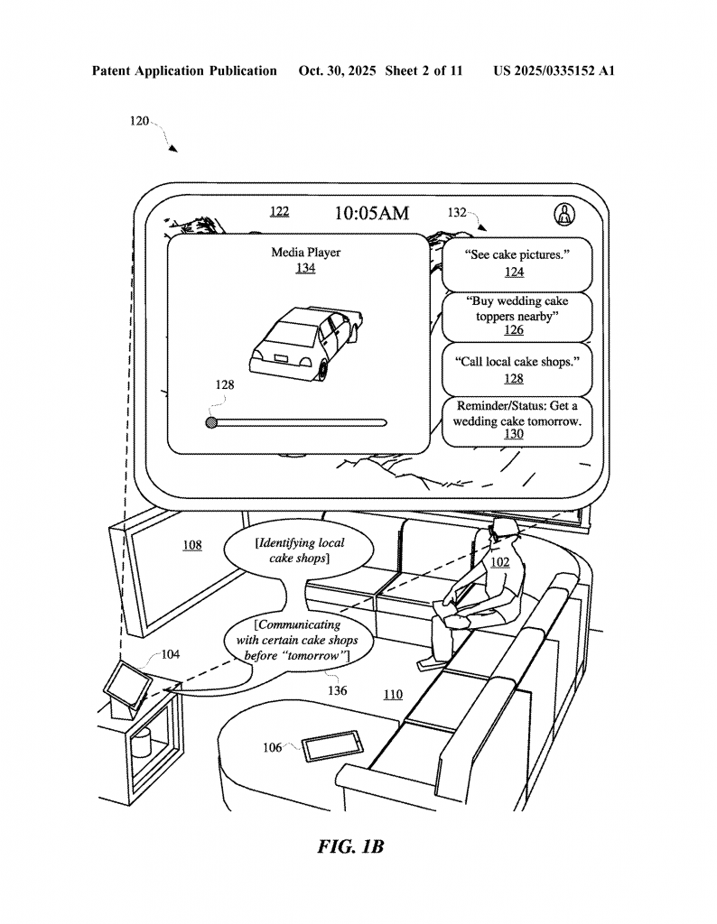 The patent also covers how these actions are managed behind the scenes. The assistant uses engines for speech and text, intent detection, task breakdown, context checking, and status updates. It can talk to local and online services, run on your device or in the cloud, and change its display based on what’s needed now. It works with all kinds of devices, from phones to smart screens to speakers, and adapts to your habits.