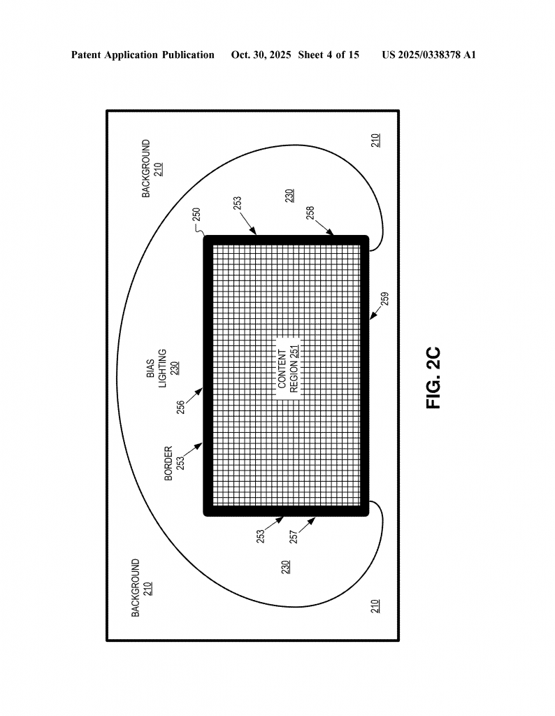 In summary, while bias lighting is well known for TVs, there has not been a good way to bring this comfort feature into headsets in a way that is smart, adaptive, and visually pleasing. This is the problem the new invention aims to solve—by using the headset’s camera, sensors, and smart rendering to create a bias lighting boundary that matches both your content and your environment, in real time.